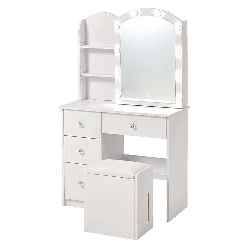 LEDライト付ドレッサー 幅80 コンセント付 スツール付 MD-5840