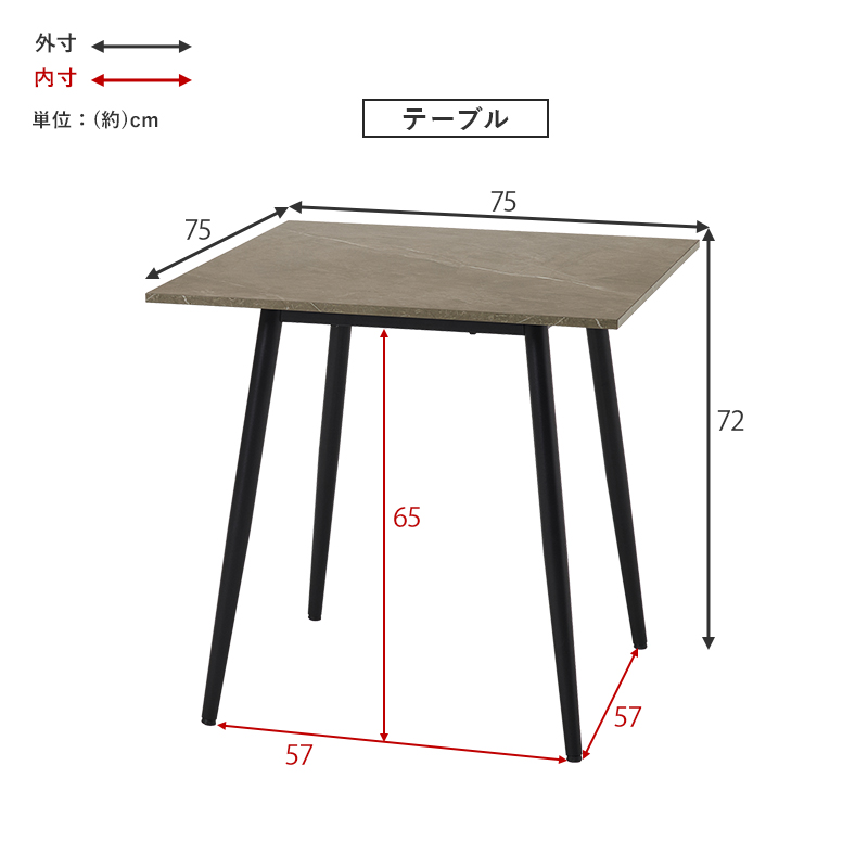 大理石調ダイニングテーブル 75×75 正方形 テーブル単品 BT-8540